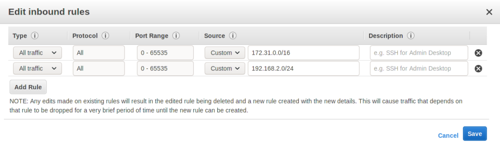 Add the cidr or specific device IP ’s you wish to allow access from like your home network and/or the ZeroTier networks, to a Security Group. Assign that SG to each instance you wish to allow access to.