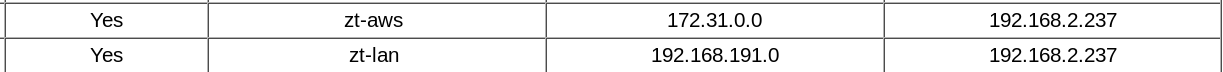 Install the zerotier-cli client on the instances that will act as the ZT gateway devices and join them to the ZT network you just created. Once joined, you will need to authorize your new nodes to be able to use them. Keep track of the assigned ZeroTier IP ’s for each of your devices.
