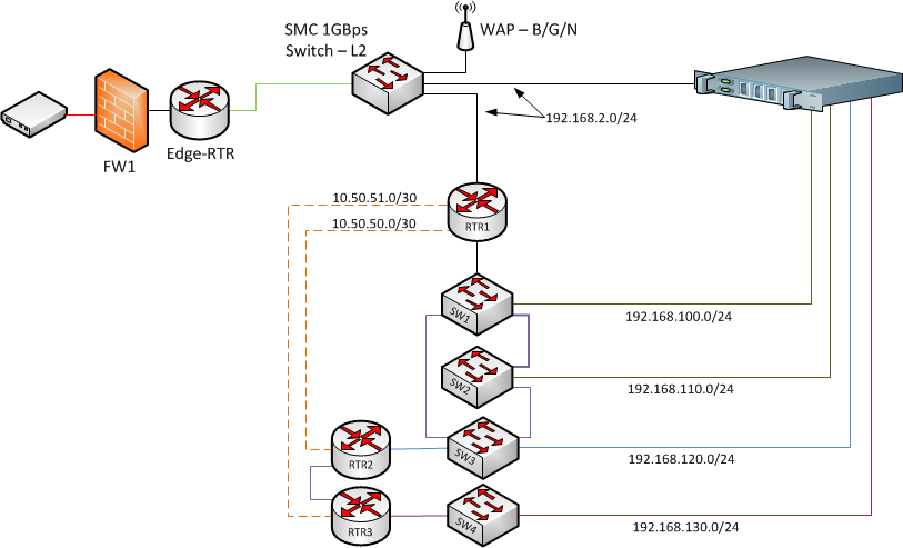 There is a mix of physical devices and virtual devices that allow me to practice management of switches, routers, ASAs, servers, network security devices (Snort, Suricata, BRO, pfSense, etc.), logging stacks, and anything else that interests me at the time.
